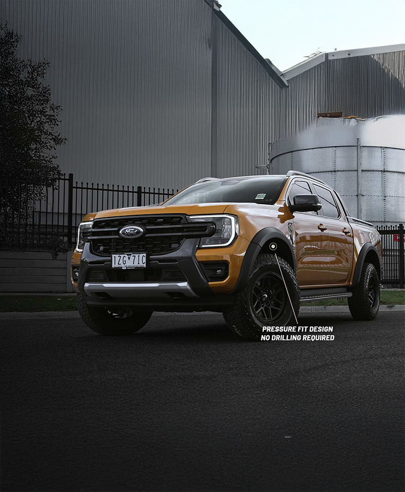 Upgrade your 2022+ Next Gen Ford Ranger XL, XLS, XLT, or SPORT with the TUS Offroad 45MM Fender Flare Kit. Manufactured from high-quality ABS plastic, these fender flares feature a sleek matte black texture finish, offering a stylish look while providing extra protection.