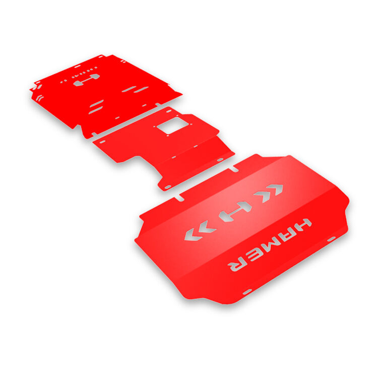 The Hamer 4x4 Full Underbody Protection Plates are designed with an emphasis on providing practical benefits. The radiator, engine oil sump, and transmission are protected from possible physical impacts by these plates, which helps to prolong the life of your car and decrease repair expenses. Fear not, off-road adventurers, for this vehicle's clever design safeguards vital components without sacrificing performance or making maintenance a chore.